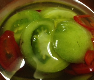 繁ったトマトを抜いて、赤くならなかった青いトマトを収穫。