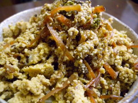 ハカマを脱がせ、ごま油で炒めて醤油で煮締める。