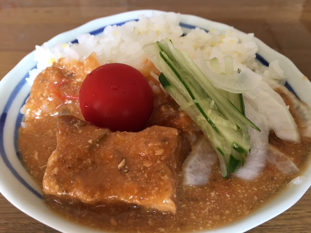 味噌汁が残っていたので、トマトと厚揚げを加えて煮込み、