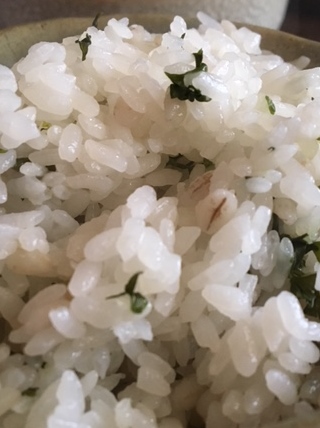 庭でセリが採れたのでセリごはん、炊き込むだけ。