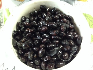 黒豆を炒ってから1割量くらいの細切り昆布と3倍の水で炊き、