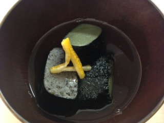 今は旬の野菜が多いので、それらを刻み、蒸し上げたコーフーに地粉や吉野葛をまぶしたものと炒め合わせます。
