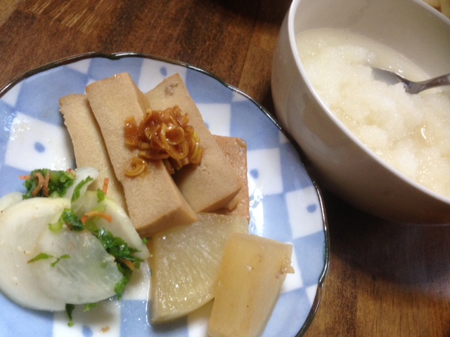 腎臓にタンパクが溜まっているので、大根湯、りんご、旬の葉野菜、ネギ類などでそれを溶かします。