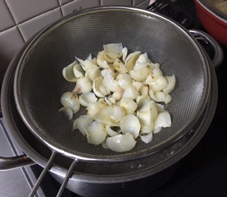 翌朝、残った具を引き上げ、その出汁で、まとめたグルテン粉を炊きます。