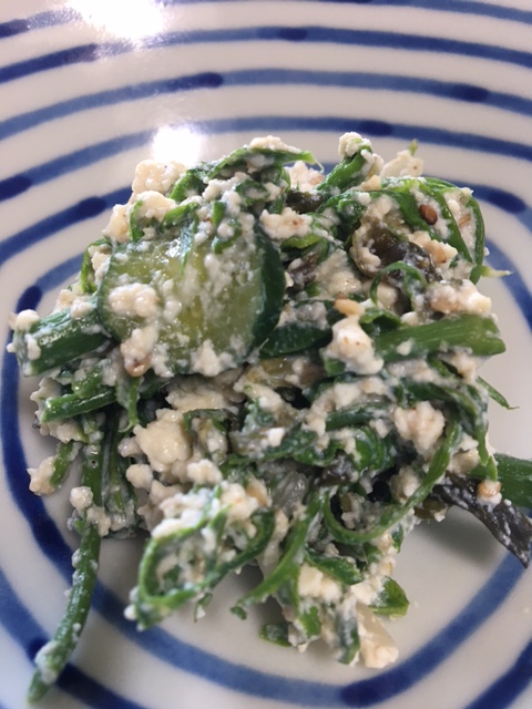 和え衣は塩煮した豆腐、よくすった白ごま、味噌、こしょう、酢