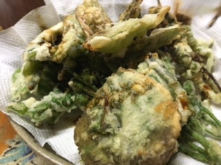 ウドとエゴマの葉を摘んでてんぷら
