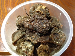 アクが抜け切れていないタケノコを乾煎りして周辺に少し焦げ目をつけます。